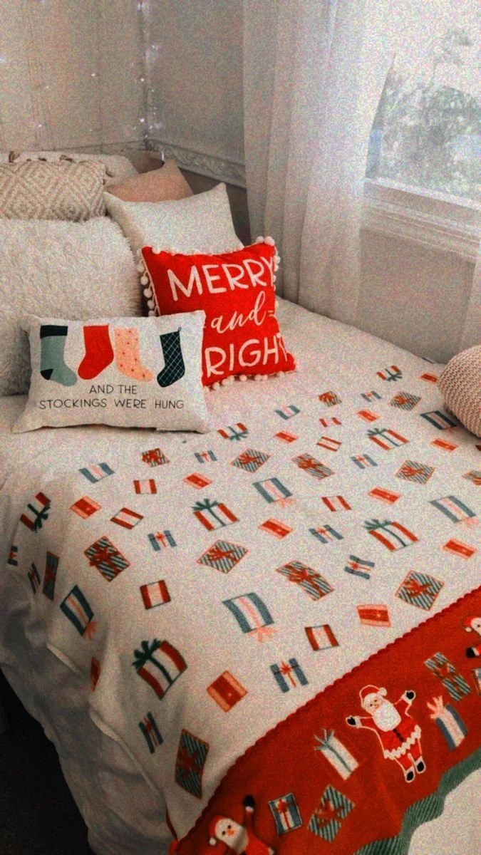 Pro Christmas dorm decor tip - if you already have throw pillows and don’t want to buy more, use pillow covers like these to instantly make them Christmas themed.