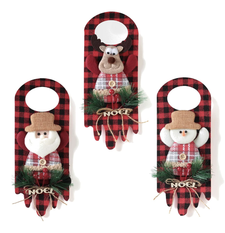 Spruce up your boring old doorknobs for the holidays with these darling door hangers. Not only are these perfect for bathroom doors, closet doors, etc. but they’re also fun to hang on your front door.