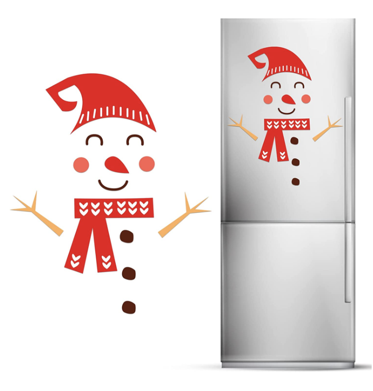How fun is this next Christmas dorm decor idea? This is also one you can keep up all winter long! You can easily find packs of stickers or magnets online to create the eyes, nose, mouth, scarf, and buttons on your fridge snowman.
