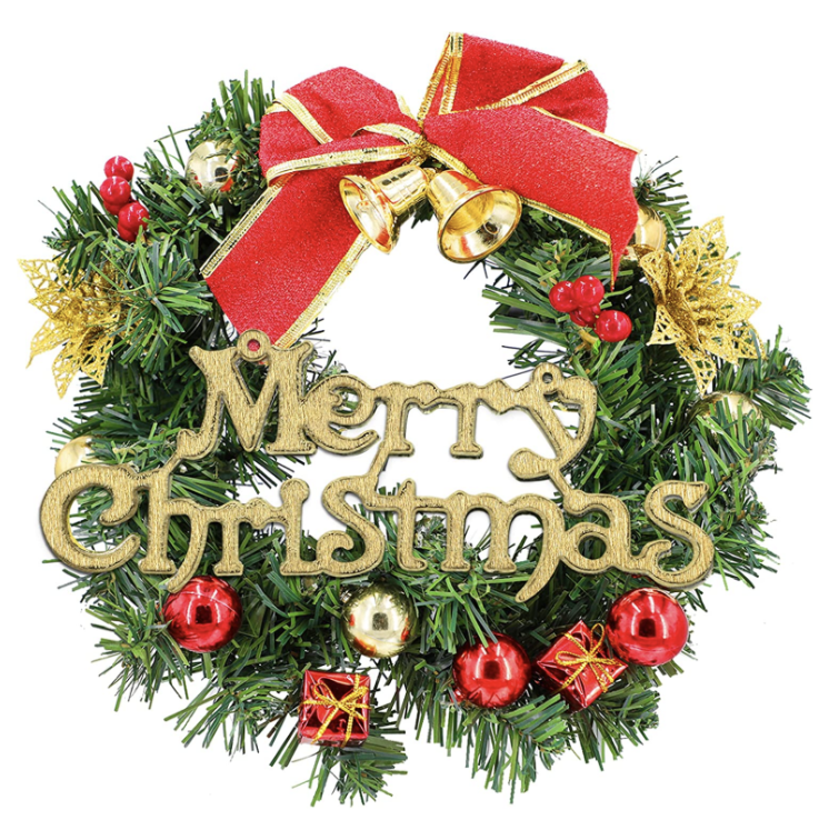 The ornaments, little wrapped presents, and floral pieces are such pretty touches, all complete with a festive red bow and bells at the top. Every time you open your door, you get to hear jingle bells. How fun and Christmasy!