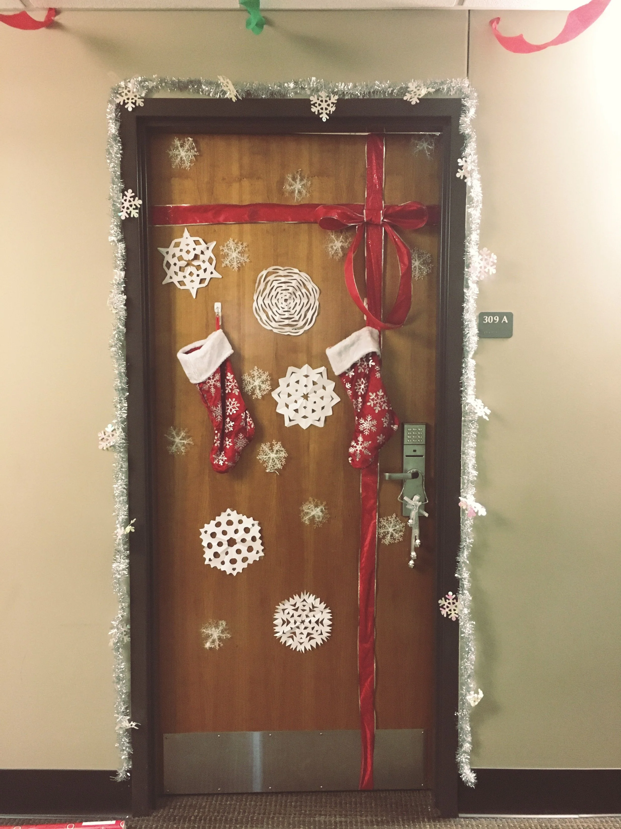 Living in a college dorm at Christmastime is super fun because you get to walk down the halls and see everyone’s holiday door decorations.