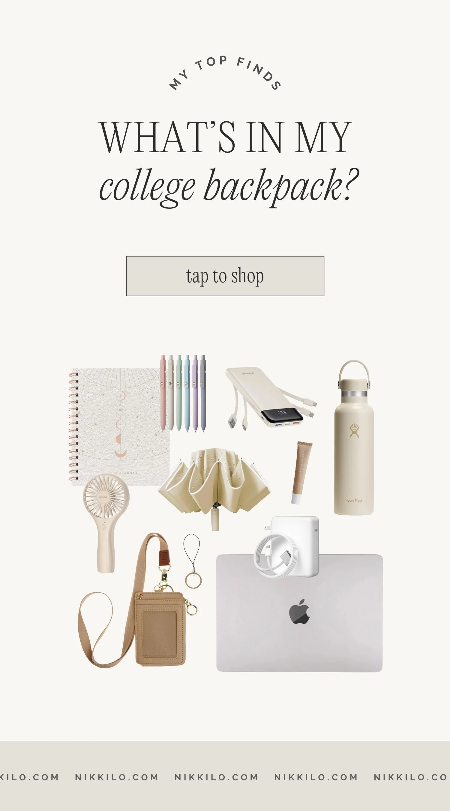 This means picking out your bag and stocking it with everything you’ll need for class! Today, I'm sharing 11 absolute must-haves to keep in your bag - from hand sanitizer, reusable water bottles, granola bars, school supplies, and more so you're covered 100% of the time.