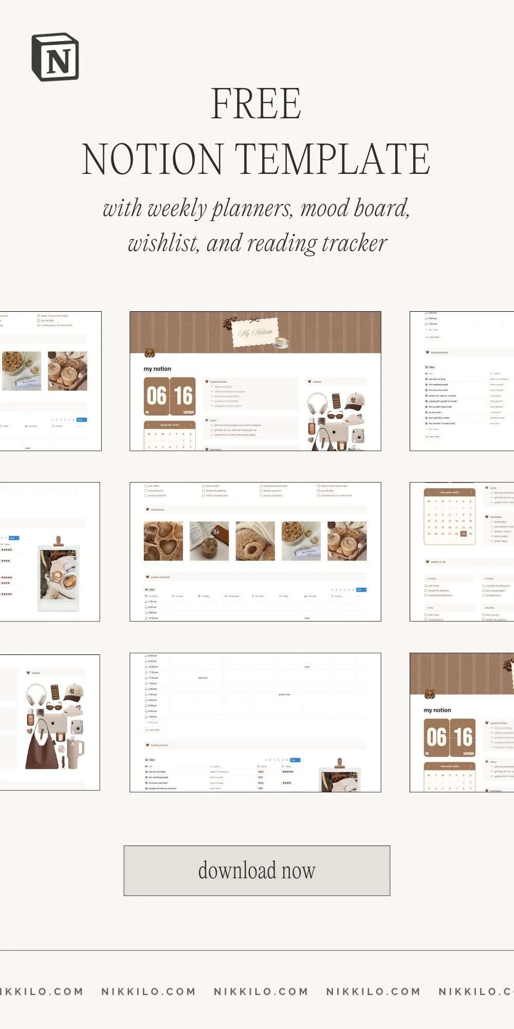 FREE Cozy Notion Template With Weekly Planners, Reading Tracker, Wishlist, And Mood Board