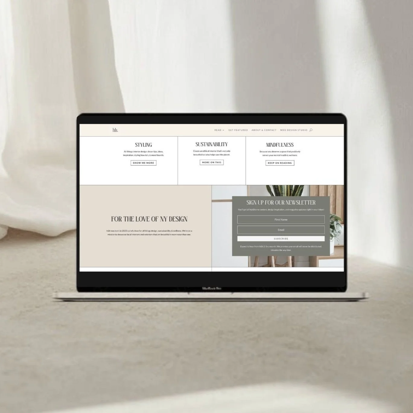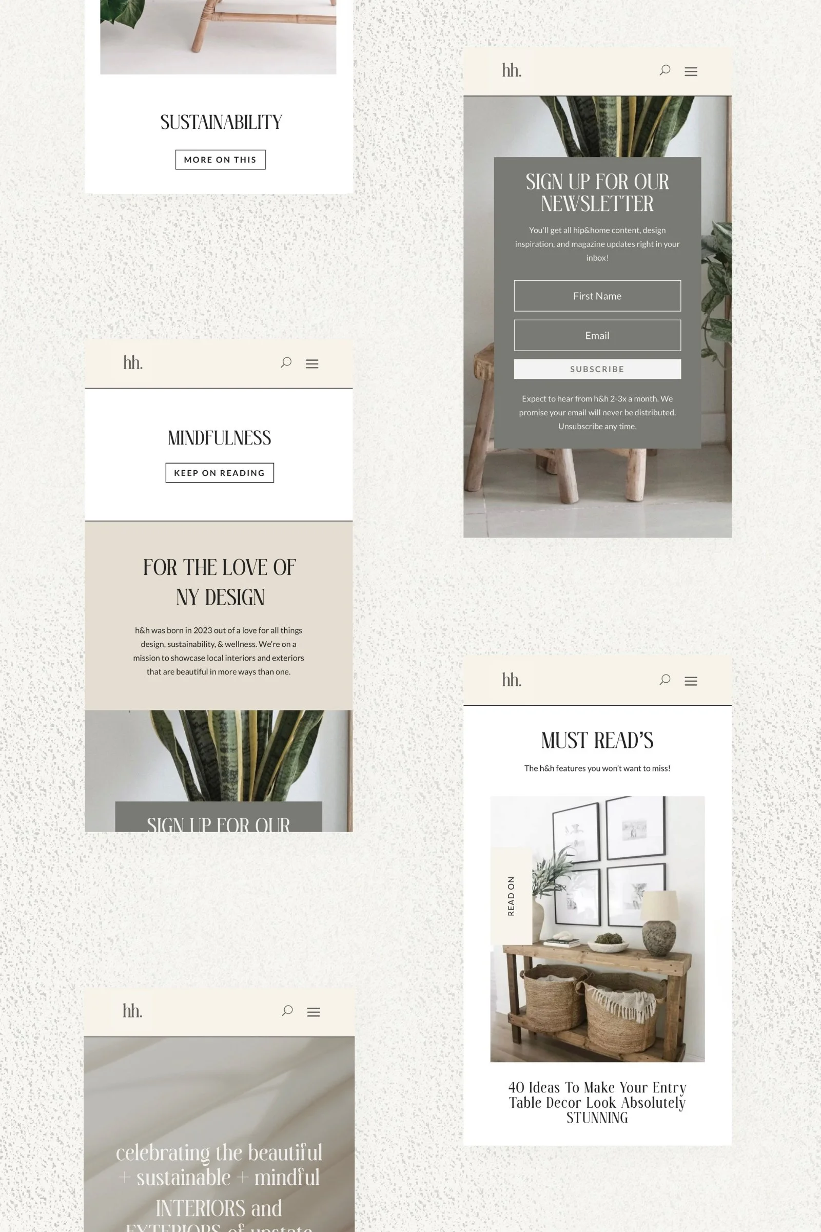 Intentional visuals + messaging: a neutral and sage green color palette reflects hip&home’s values of mindful, eco-friendly living. The website copy is upfront about these values, attracting a loyal, long-term monthly readership of between 3-10,000 that resonates with its values/content.
